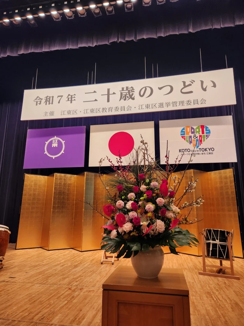 カワシマも早朝に無事、成人式の演台花をお納めすることができました!