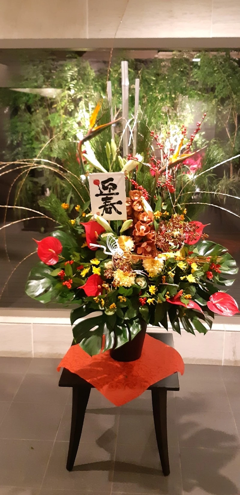 写真は毎年飾らせていただいているマンションエントランスの装花。