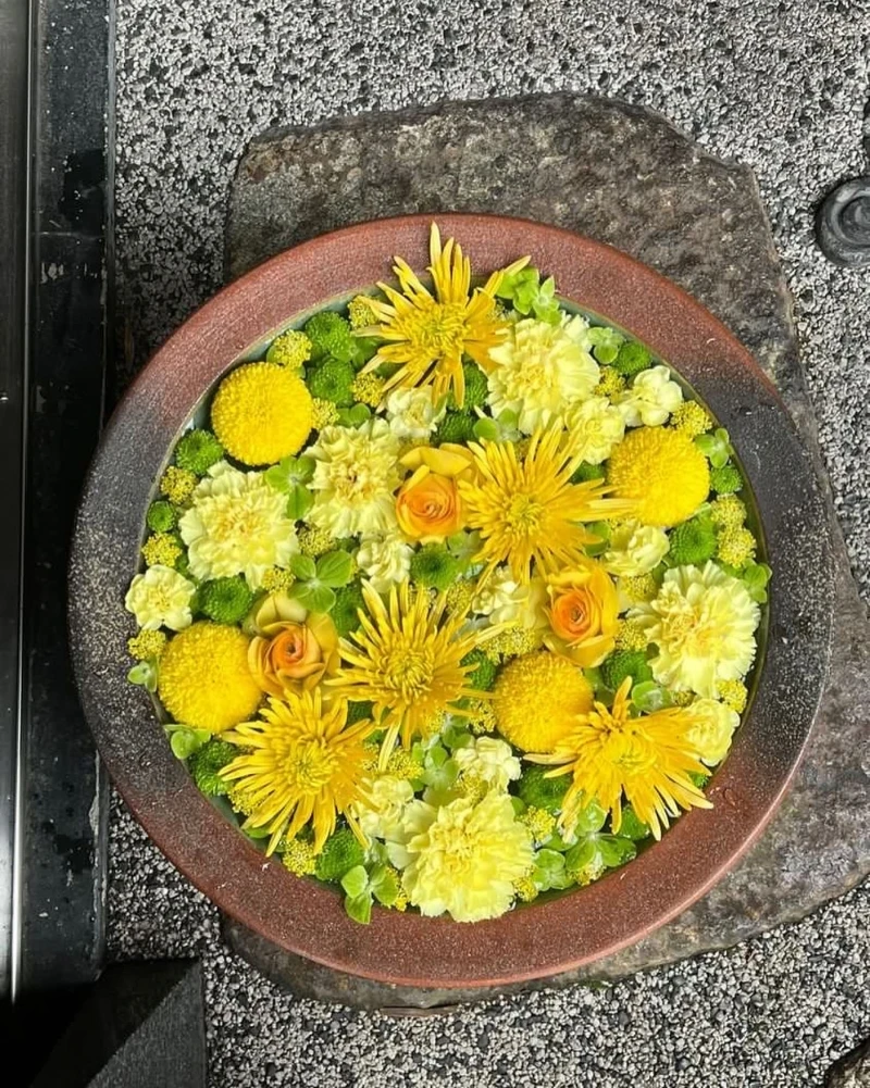 本日は雪空の中セッティングに回りましたが、雪の中の花手水これまた映える‼︎