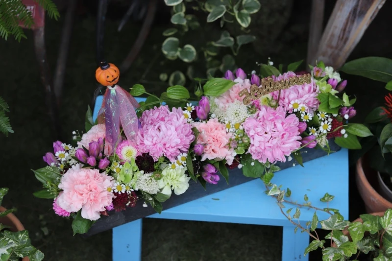 ハロウィンの装飾品と一緒にハロウィン調のお花を飾ると更に素敵ですよね♪