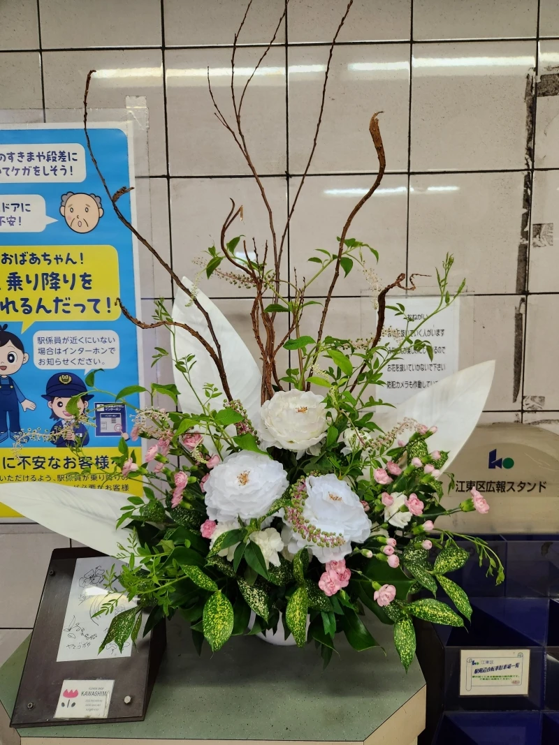 改札口に飾らせて頂いてるお花本日新しく入れ替えてきました!