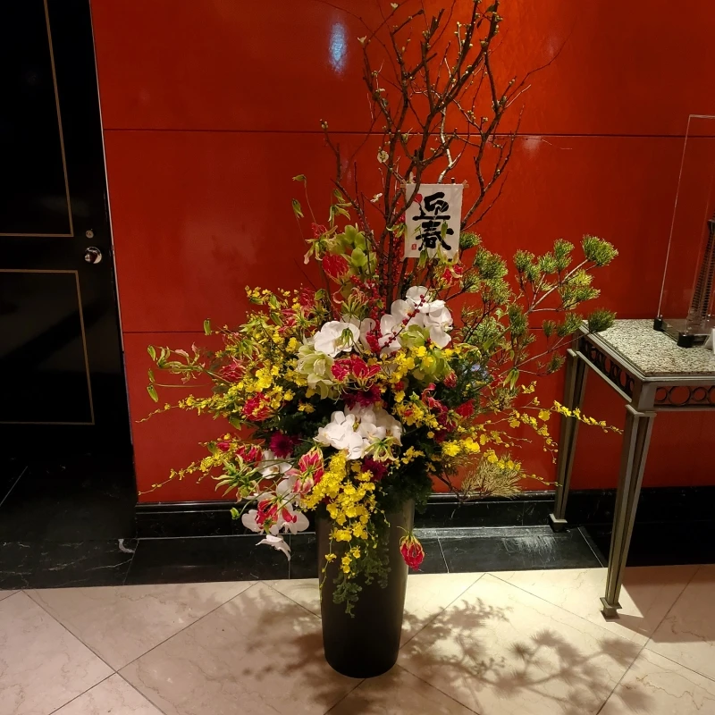 ホテルロビーに飾る正月装花を