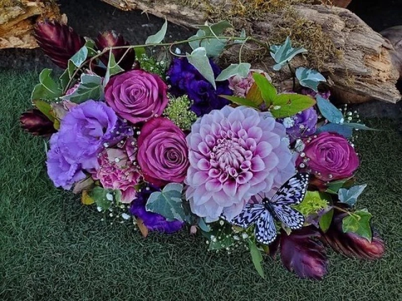 アンティーク調のオシャレなキャンドルに合わせて花材をチョイス