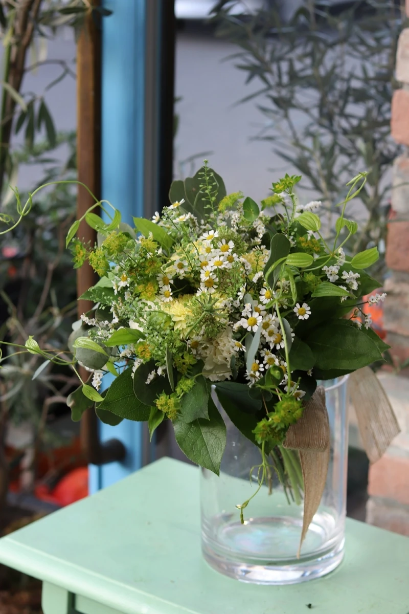うまく調和して柔らかくて優しい花束に仕上がったのではないでしょうか。