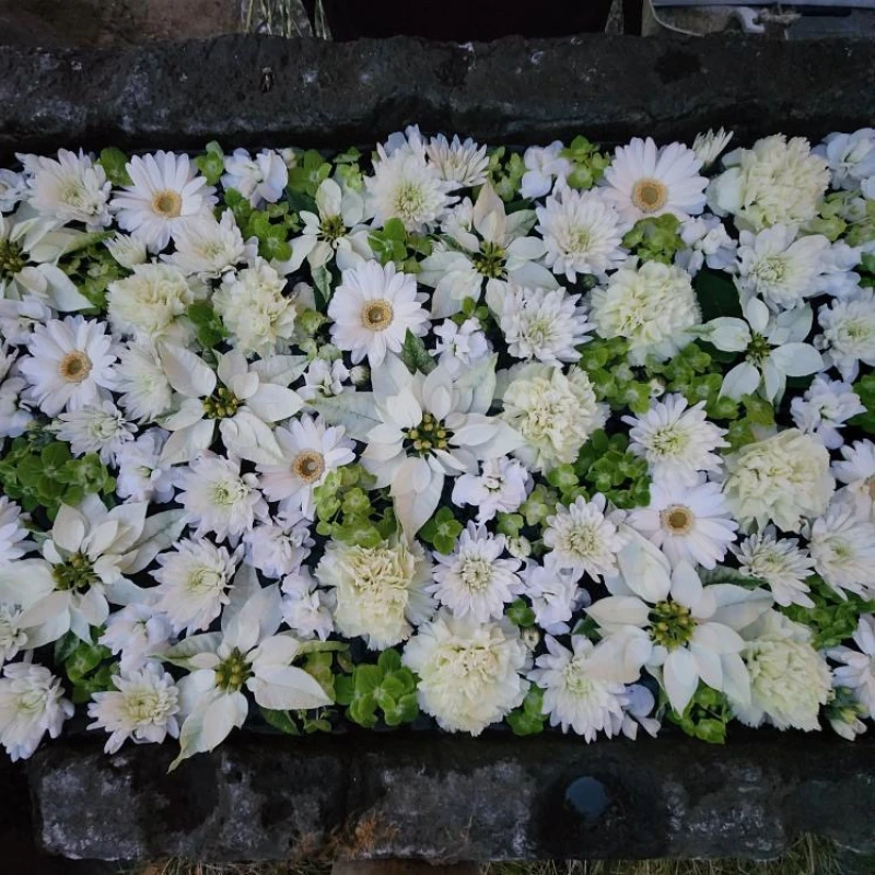 花嫁さんの髪飾りと同じピンクベージュの生花を集めて、一部シルバーのスプレーをかけました
