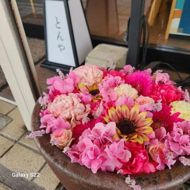 とんやさんの花手水お取り替えしてきましたよ〜!!