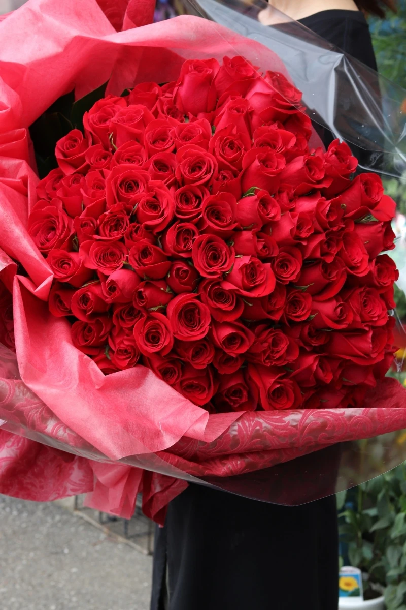 カワシマでは茎も長く一輪が大きい上質な赤バラを用いて作りますので