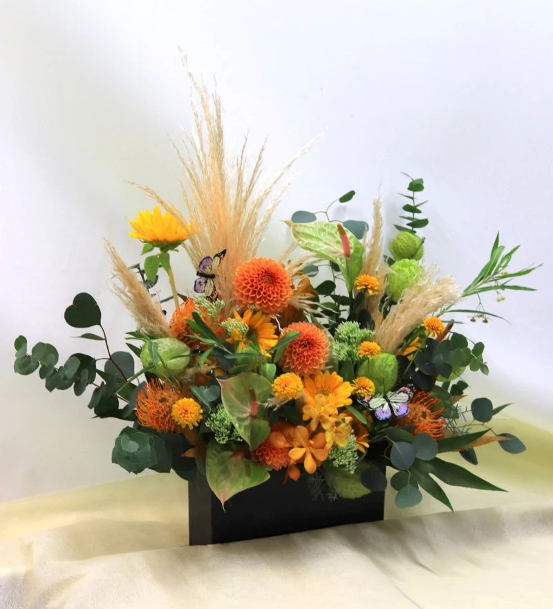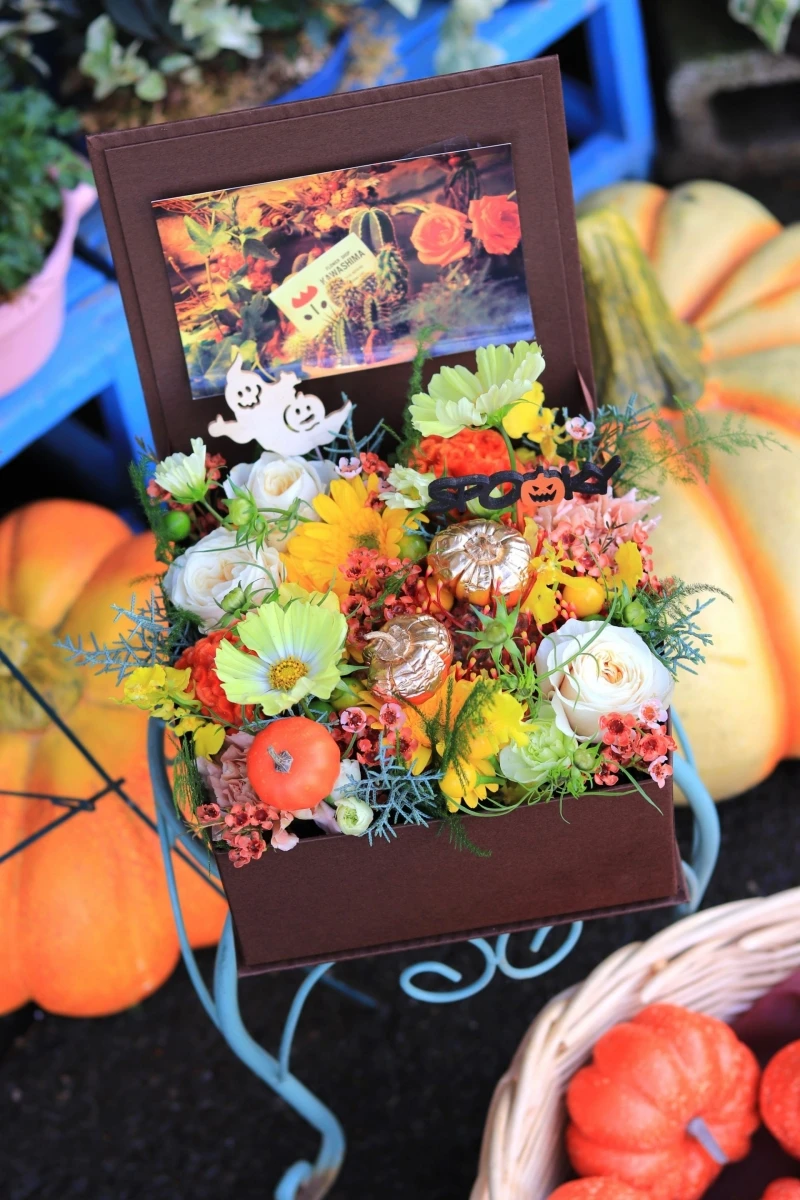オレンジにこだわらずカラフルに、眺めて楽しくなるようにアレンジしています♪