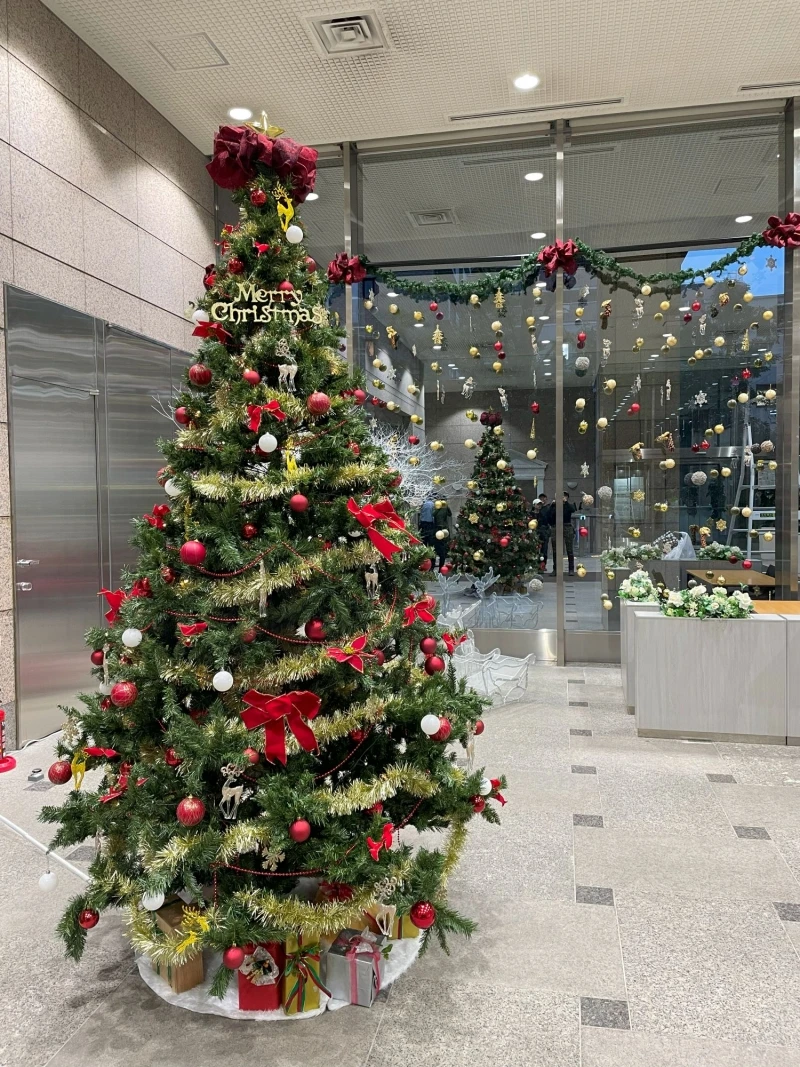 ビルの大窓には今年もオーナメントをたくさん飾りました★☆☆
