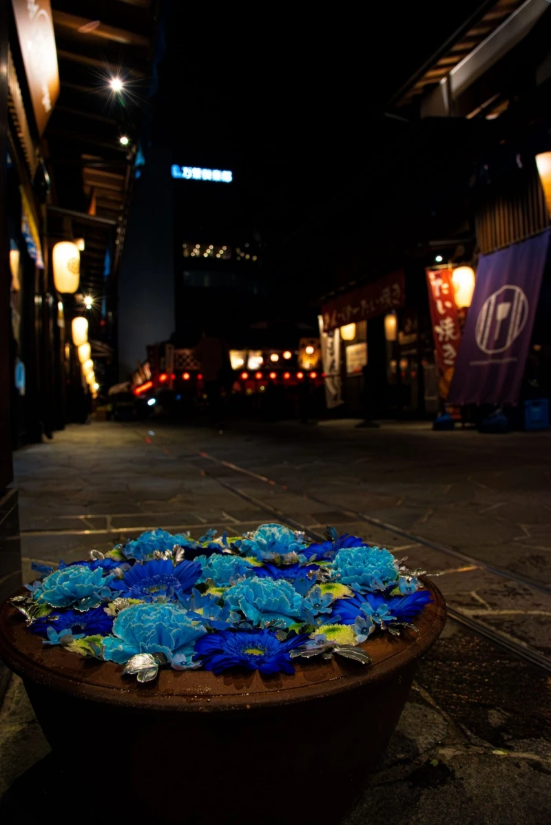 夜の街並みと灯りと花〜雰囲気たっぷりですねー