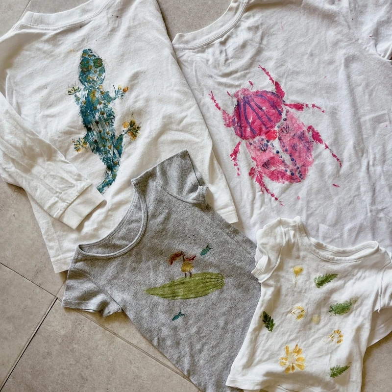 ゴミのなかから図案に合う茎や葉を探しだすの、楽しそう。。