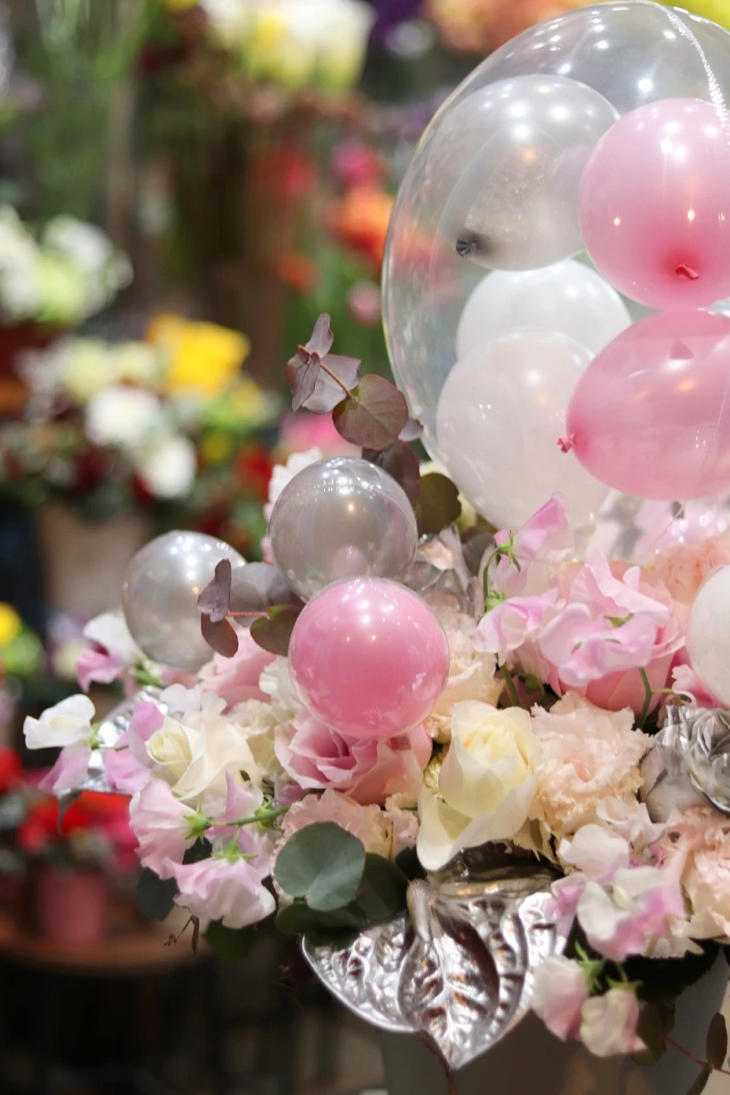 お客さまお持ち込みのバルーンに合わせてアレンジしました。
