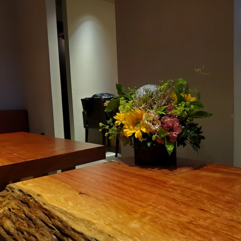 1枚板のお洒落なカウンターと落ち着くテーブル席