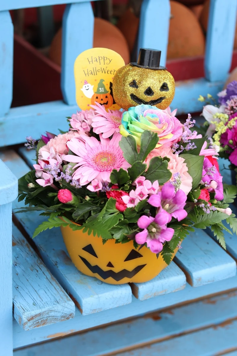 とってもかわいい& ゴージャスなカボチャポットになりましたよ