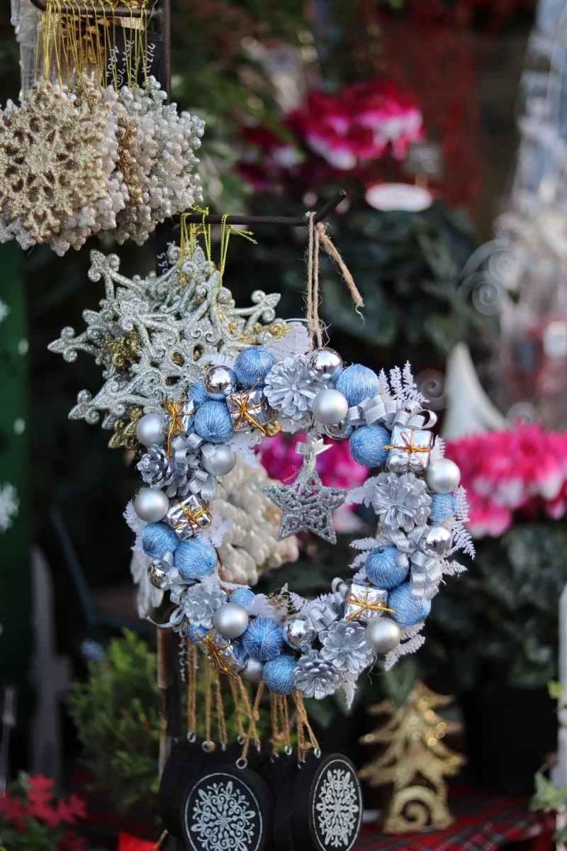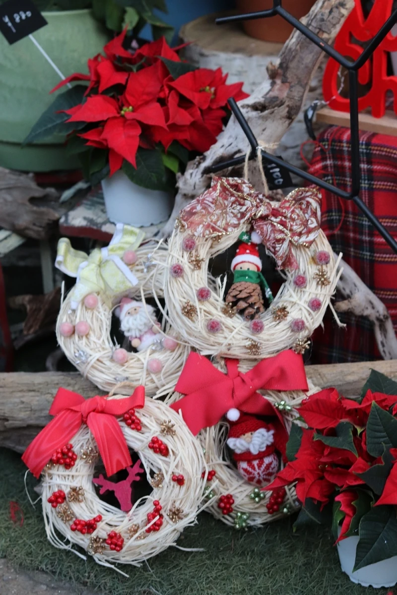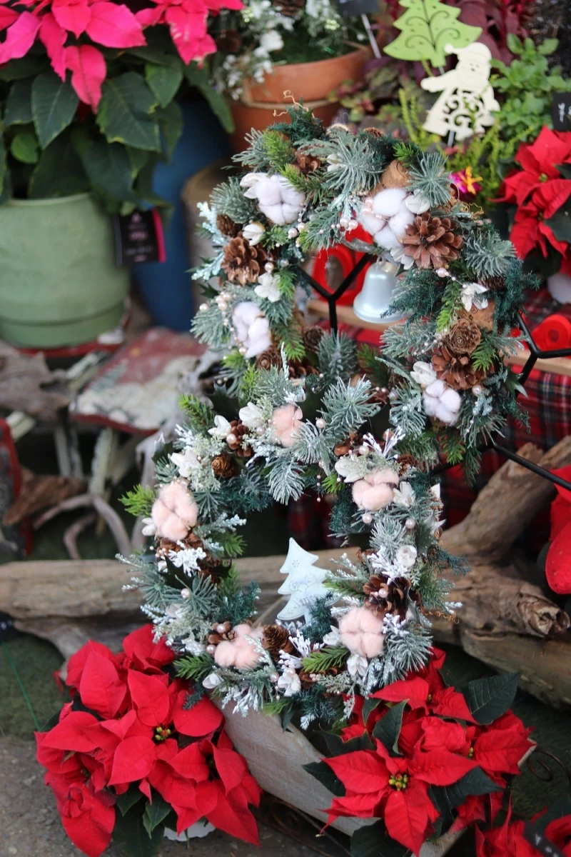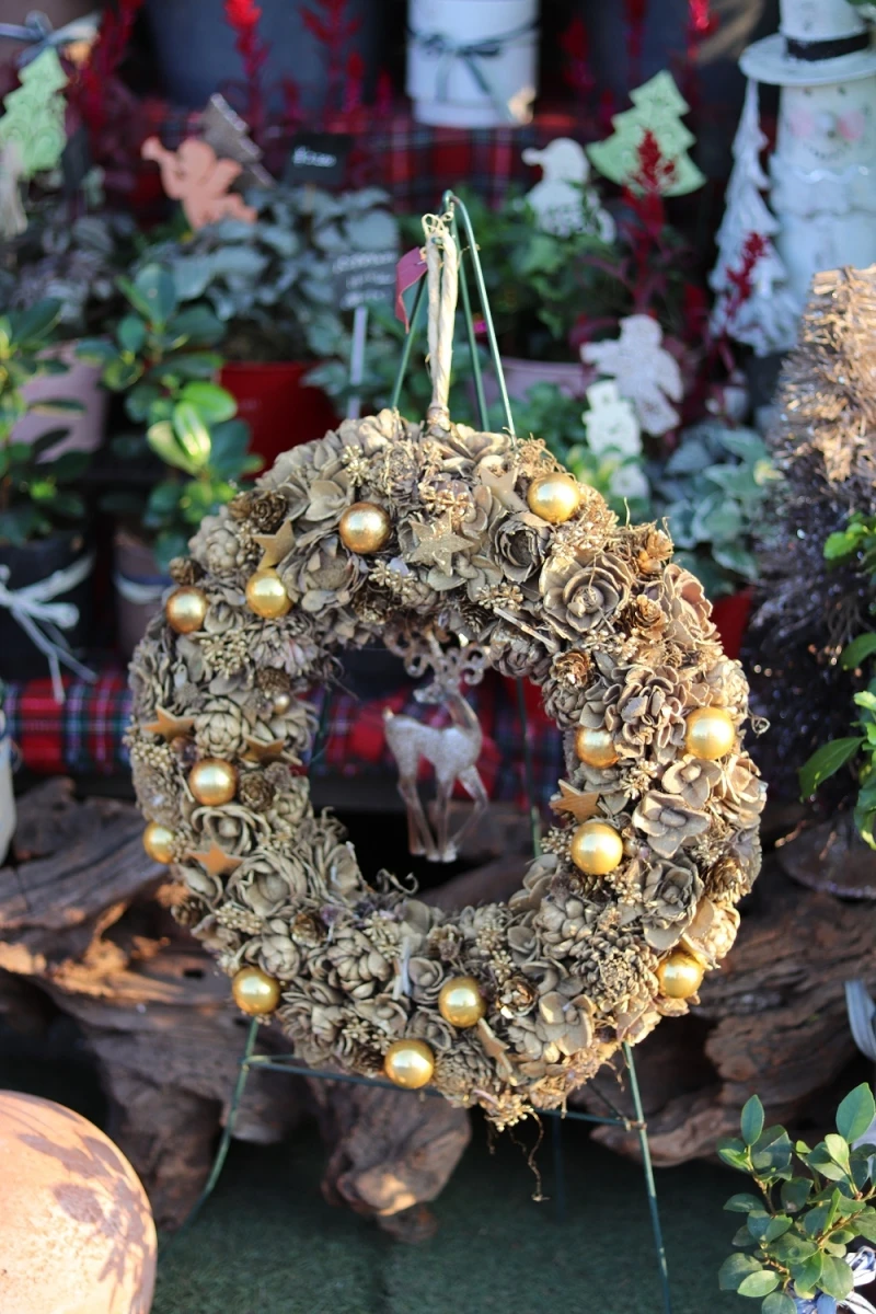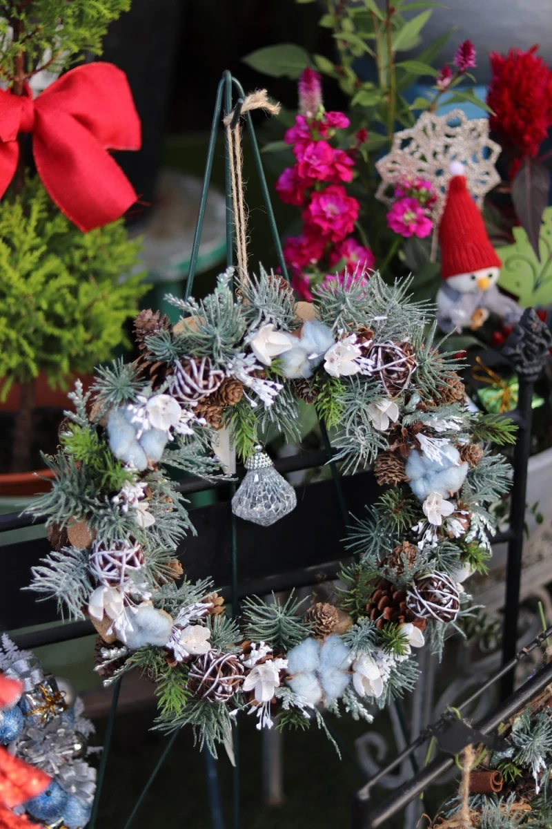 売り場のクリスマスリースを