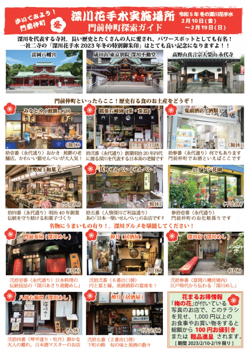 第二回深川花手水参加店舗と地図載せます!!