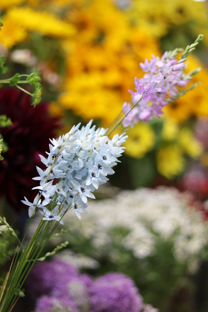 細い茎に透明感のあるきれいな花がたくさんついています。