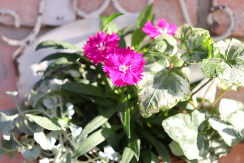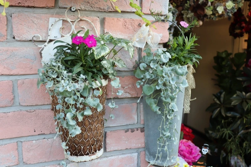 他、アイアンの寄せ植え2種です。良く咲いてくれるナデシコと垂れ下がるディゴンドラが素敵です☺️ポイントにリボンを付けてみました!ぜひ店頭でご覧になってみてください〜♪