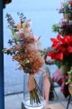 花嫁さんの髪飾りと同じピンクベージュの生花を集めて、一部シルバーのスプレーをかけました
