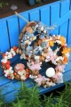 アーティフィシャルフラワーに、貝やドライフラワー、リボン、かわいい小物などいろいろ組み合わせて作りました