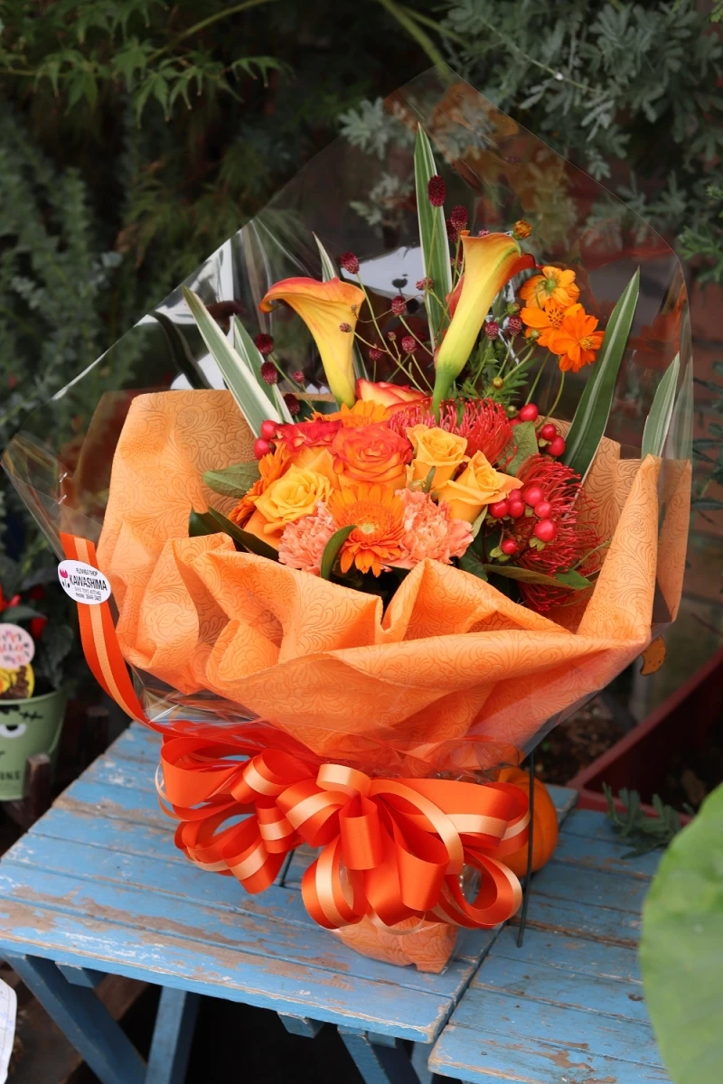 最近人気のオレンジ系のお花束をご紹介します