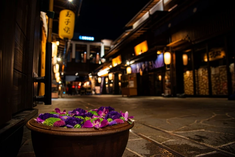 夜の街並みと灯りと花〜雰囲気たっぷりですねー