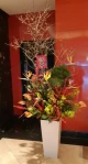 壁面が赤なので花を添えると一気に周囲が華やぎます。