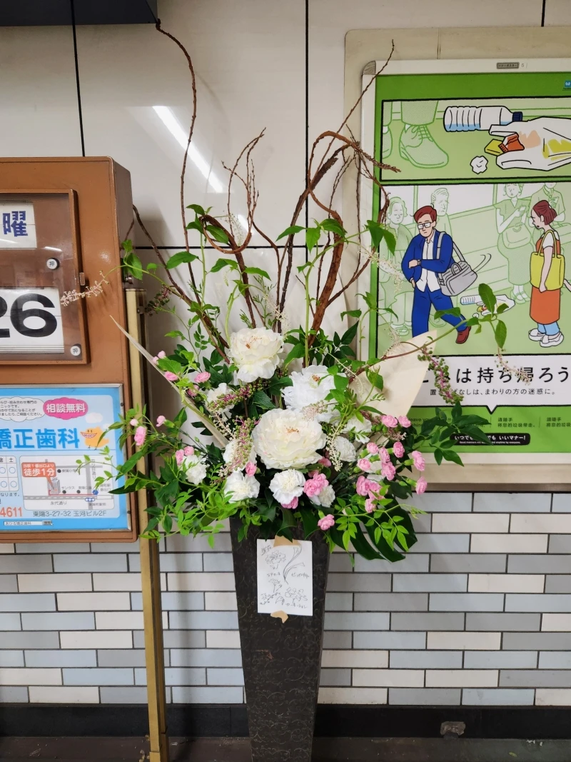 改札口に飾らせて頂いてるお花本日新しく入れ替えてきました!