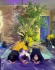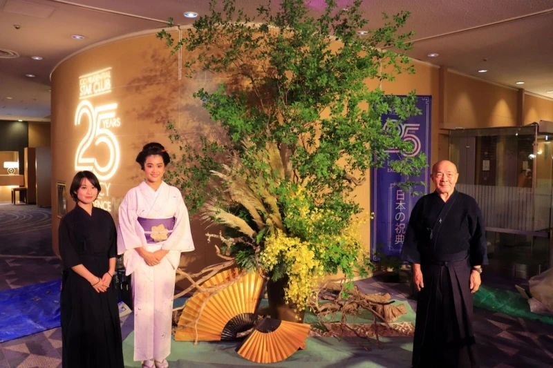 生け込みの大役を仰せつかったのはカワシマ次女琴ちゃん、日本髪と和服もすっかり板につき、なかなかの大胆な動作、迷うことなくシュシュシュっと