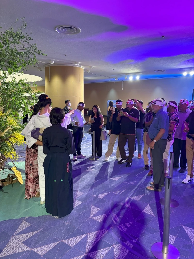 インドからのお客さま、400人が行き交う広間にての実演でした。