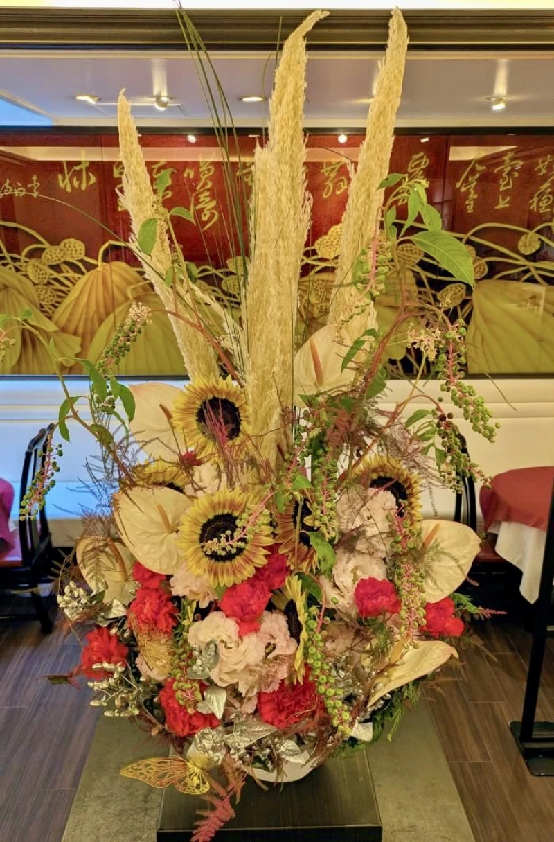 ワレモコウや、ケイトウ、パンパスグラスなど秋を感じさせる花材も入っています♪