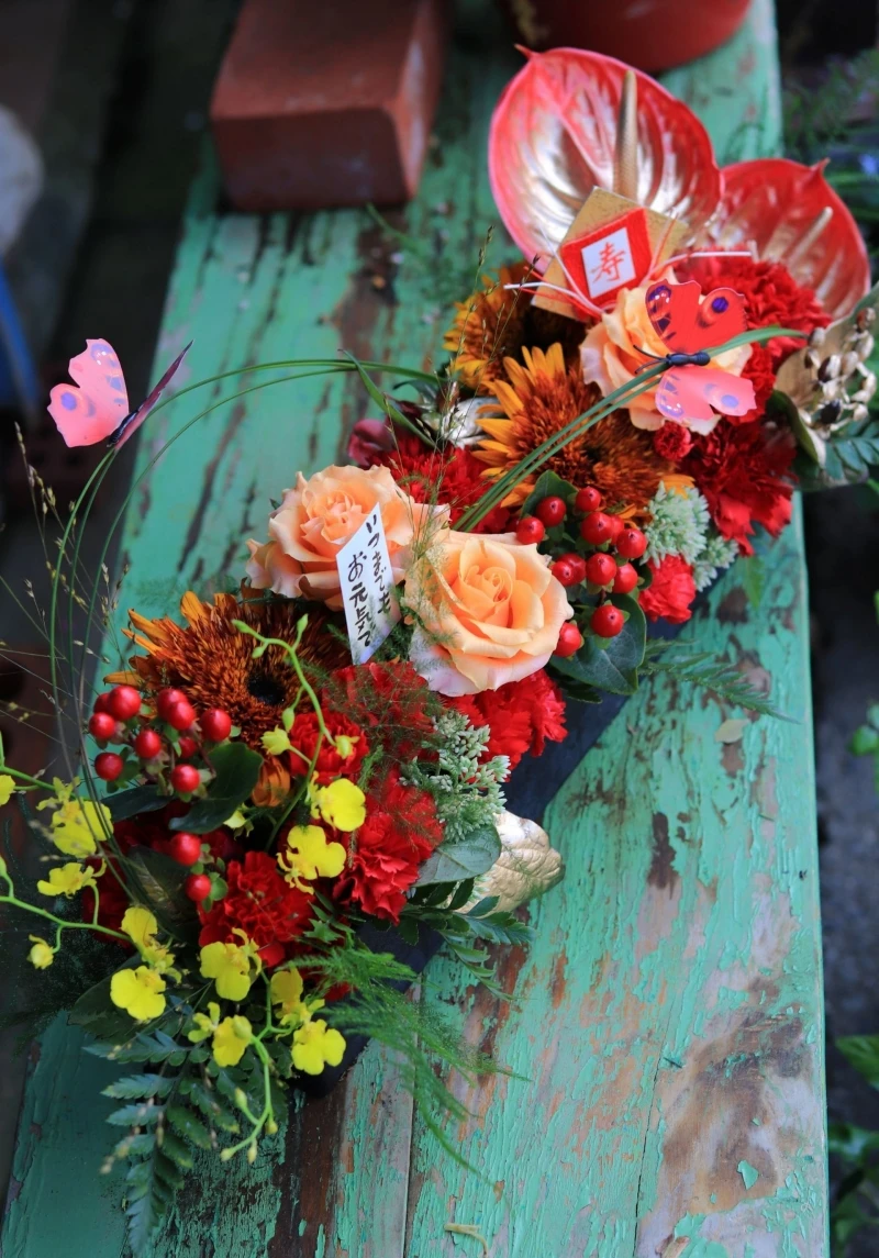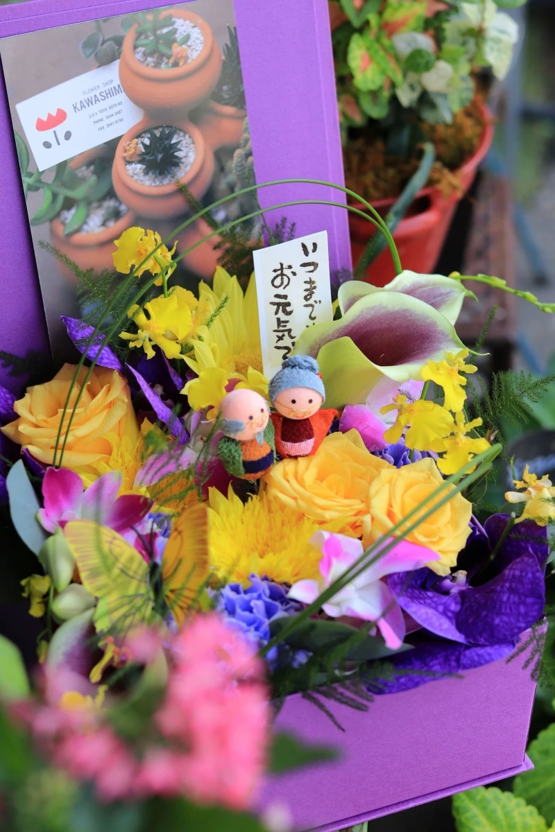 カワシマの人気アレンジに敬老ピックを飾ってみました!