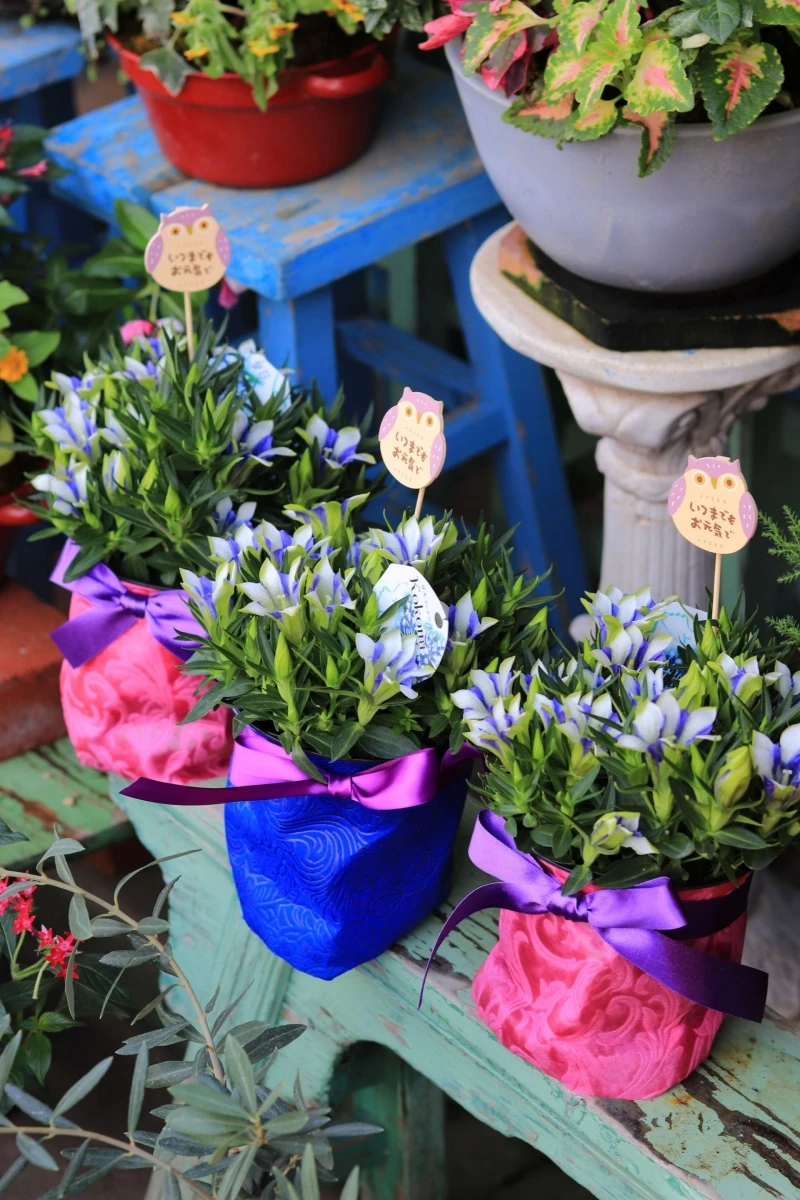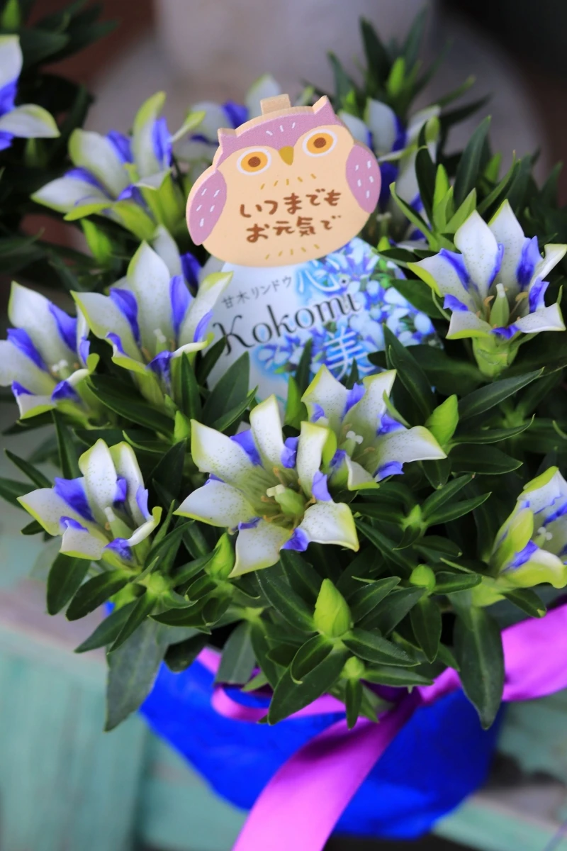 リンドウの鉢植えもこんな感じで素敵にラッピングいたします♡