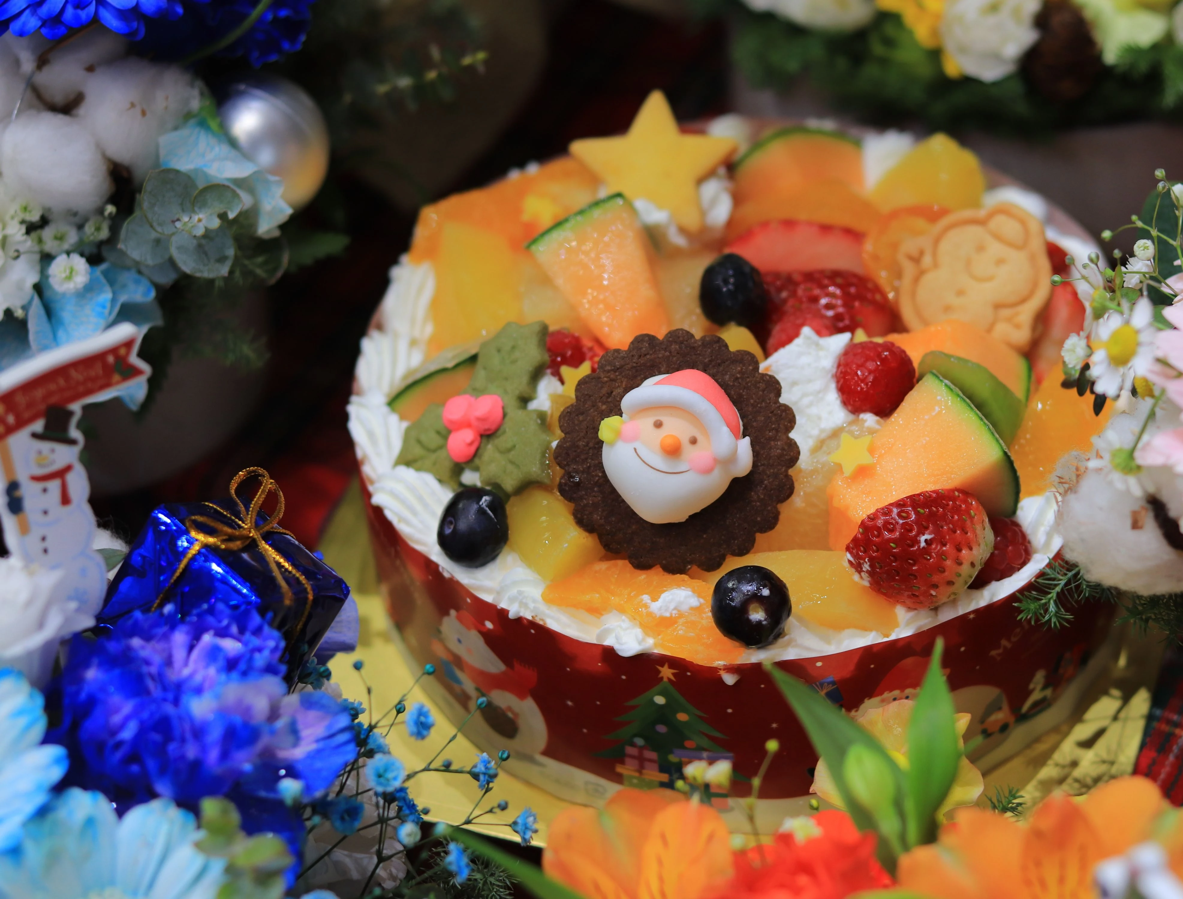 うふさんの創作ケーキ、にっこりサンタさんのクッキーがちょこんと😊