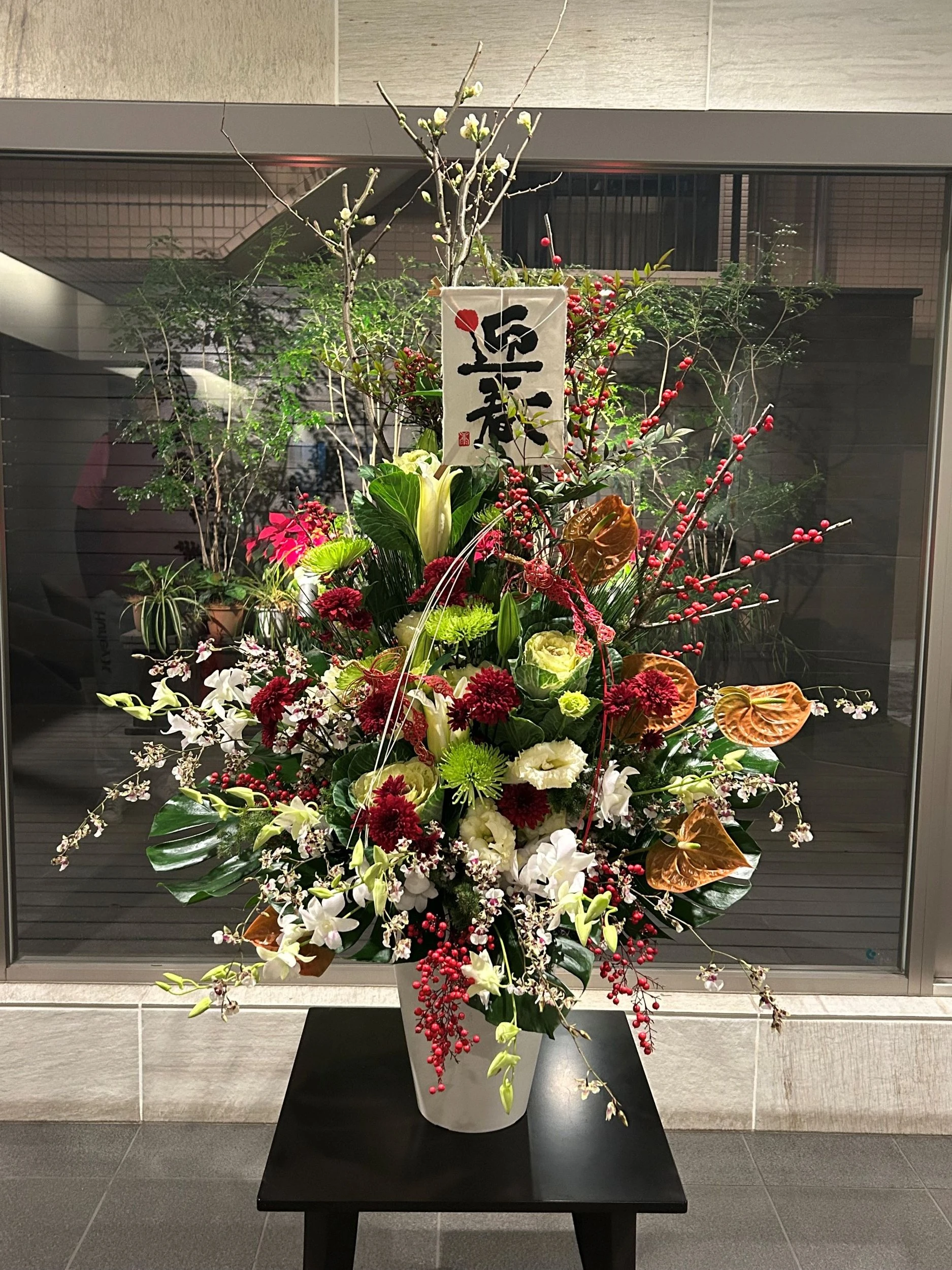 大枝もたくさん使って伸び伸びと生けました!
