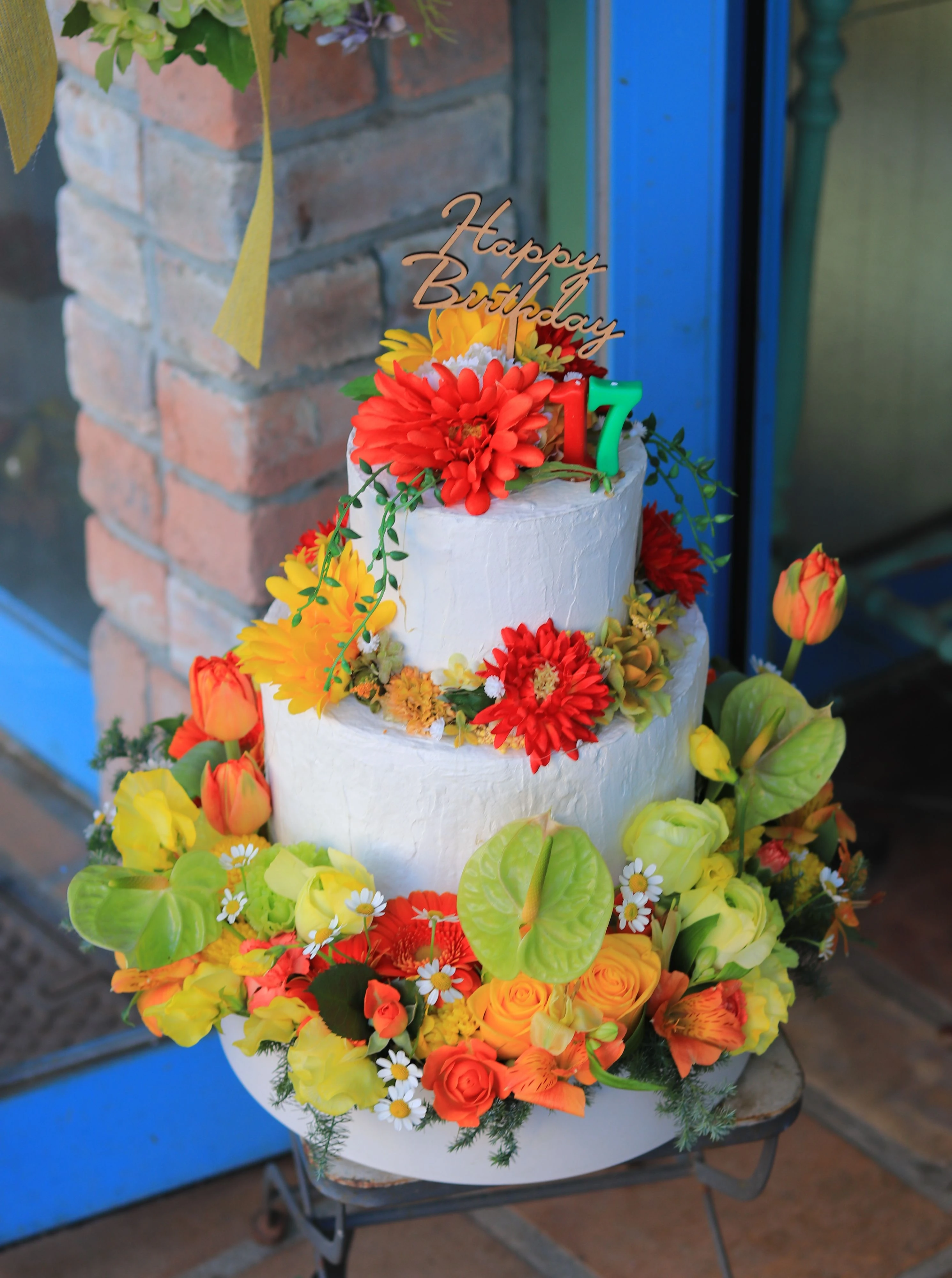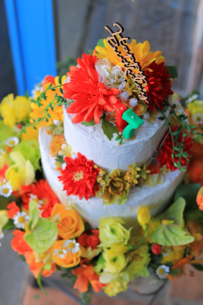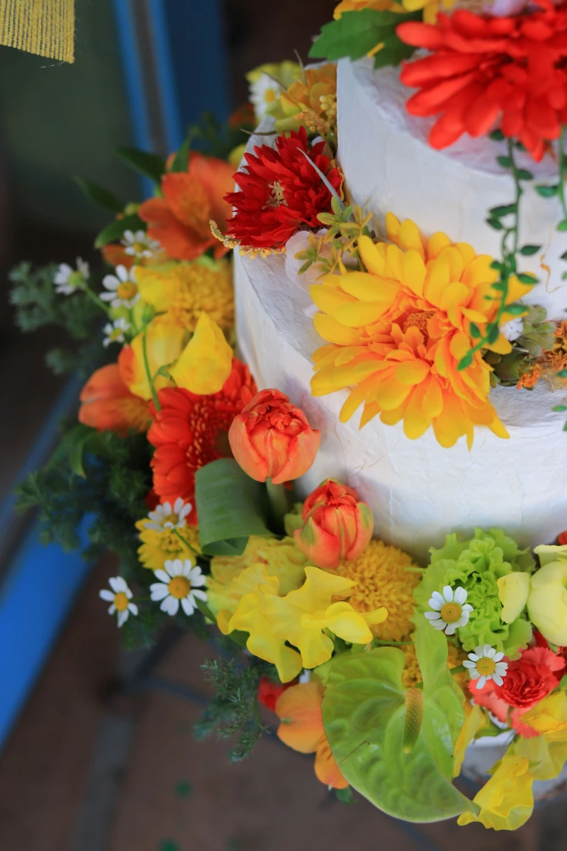 ケーキの上段、中段は造花、