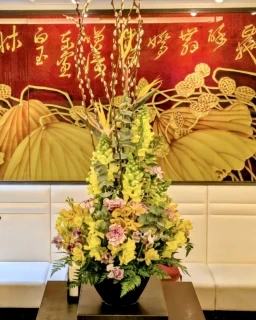 厳しい寒さの中にも春の兆しを感じさる花材をとりいれています