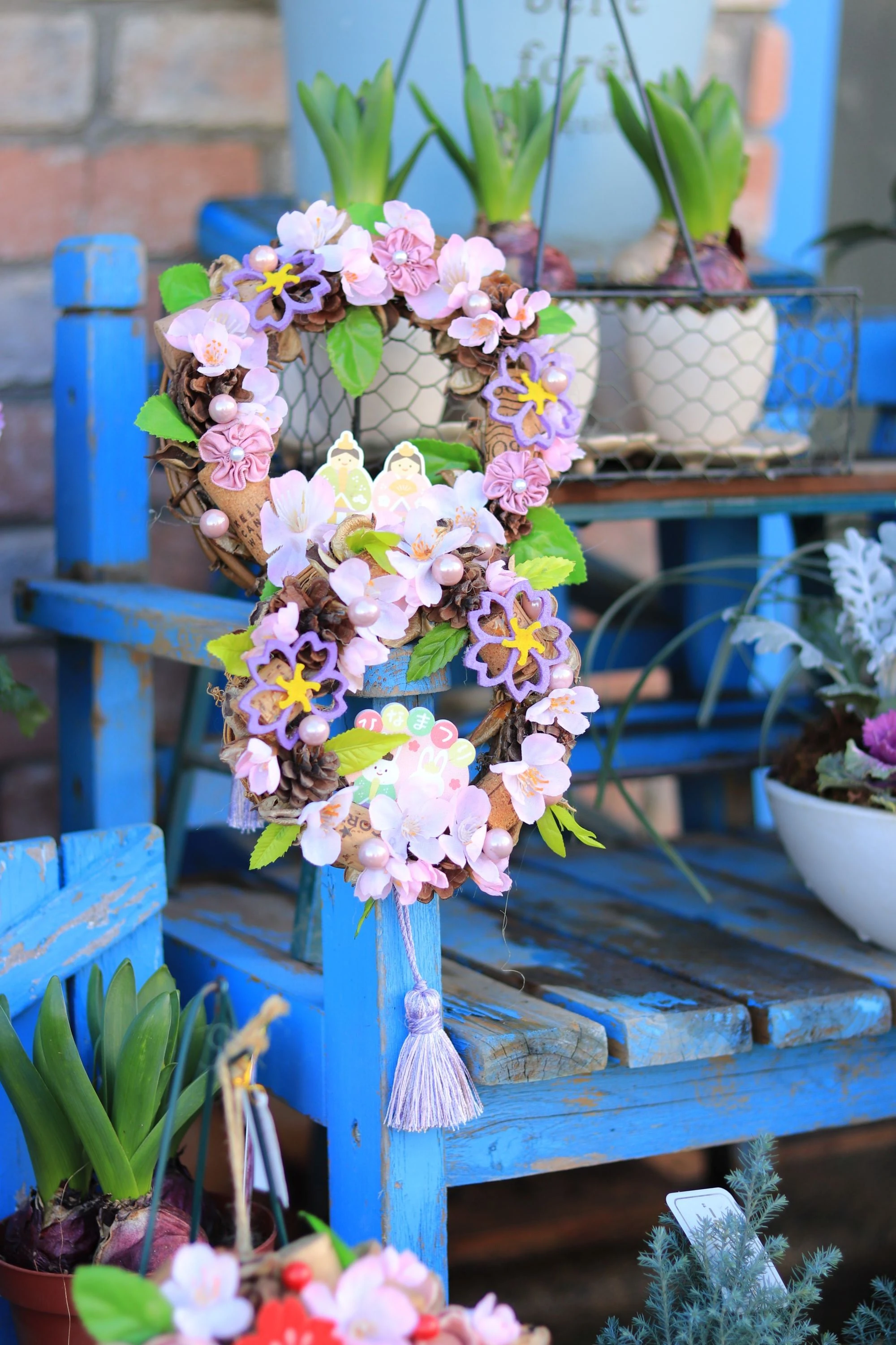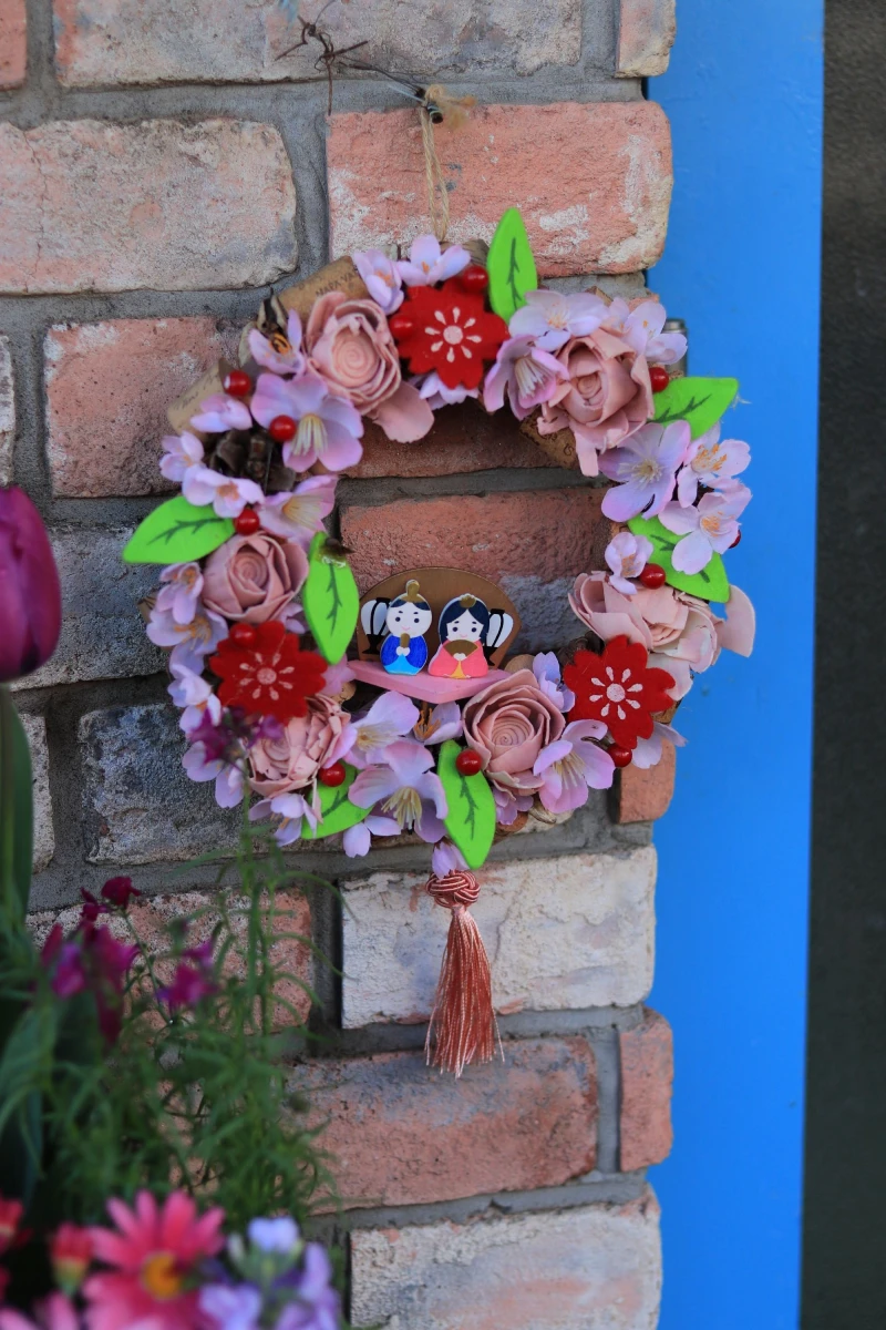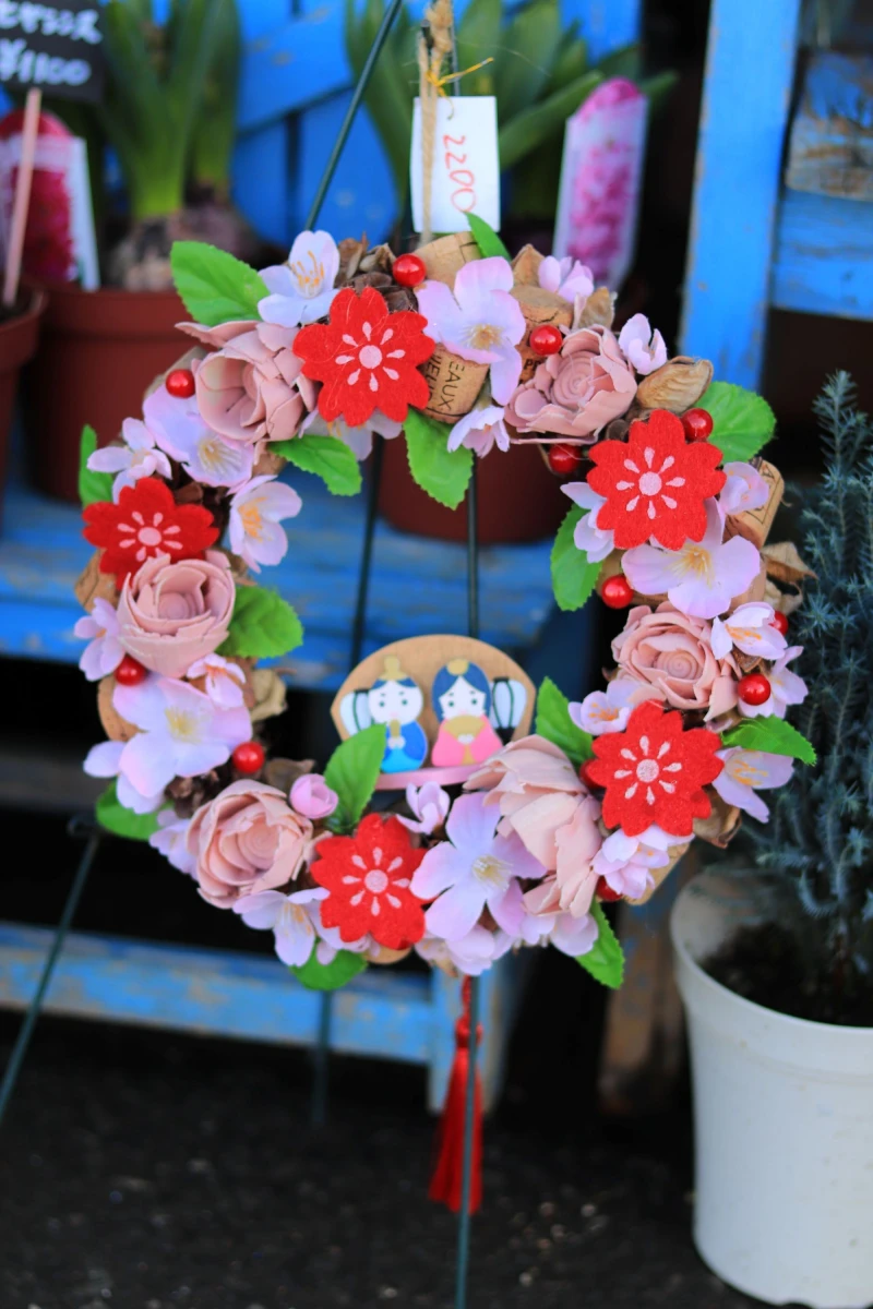 生花に先行してアーティフィシャル(造花の)リースをひな祭り向けに