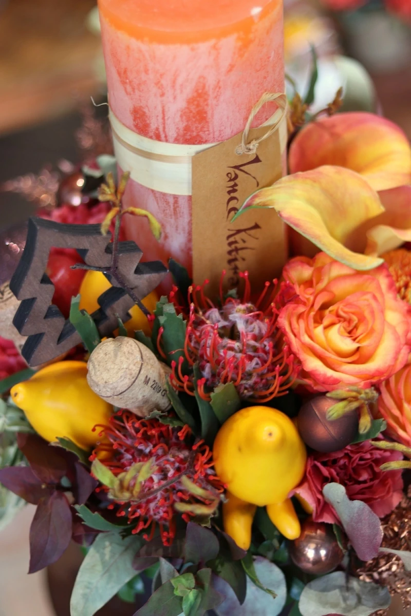 アンティーク調のオシャレなキャンドルに合わせて花材をチョイス